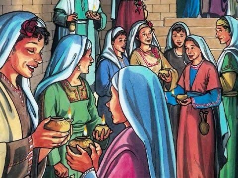 യഹൂദരുടെ വിവാഹാഘോഷങ്ങളുടെ ചുവടുപിടിച്ചുകൊണ്ടാണ് ഈശോ പത്തു കന്യകകളുടെ ഉപമ രൂപപ്പെടുത്തിയിരിക്കുന്നത്. ദിവസങ്ങൾ നീണ്ടു നിൽക്കുന്ന വിവാഹാഘോഷങ്ങൾക്കുശേഷം മണവാട്ടിയുടെ വീട്ടിൽ നിന്ന് പുതുമണവാളനും, മണവാട്ടിയും, അവരുടെ പുതിയ വീട്ടിലേക്ക് യാത്രയാകും. യാത്ര എന്നുപറഞ്ഞാൽ, താലപ്പൊലിയും വെഞ്ചാമരവുമൊക്കെയായുള്ള ഒരു യാത്ര. അതെപ്പോഴാണ് അവരുടെ പുതിയ വീട്ടിൽ എത്തിച്ചേരുക എന്ന് മുൻകൂട്ടി പറയുക വയ്യ. തെളിഞ്ഞ ദീപങ്ങൾ പിടിച്ചു് അവരെ എതിരേൽക്കുകയെന്ന ദൗത്യം കന്യകകളാണ് ഏറ്റെടുക്കുക. വിളക്കുകളിൽ എണ്ണപകർന്ന്, തിരിനാളങ്ങൾ ഒരുക്കി രാത്രിയുടെ യാമങ്ങളെണ്ണി അവർ കാത്തിരിക്കും. കാരണം, എപ്പോഴാണ് അദ്ദേഹം വരിക എന്നറിയില്ലല്ലോ. അവർ എത്തുമ്പോൾ സേവകരിൽ ആരെങ്കിലും സിഗ്നൽ കൊടുക്കും. അപ്പോൾ കന്യകമാർ പുതുമണവാളനെയും, മണവാട്ടിയെയും സ്വീകരിക്കുവാൻ പുത്തേക്കെറിങ്ങിവരും.